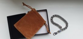 Full-fledged bracelet. This page shows a massive silver bracelet of weaving "Bismarck" for a wrist with a “Box” clasp with one clasp; if desired, it is possible to install two locks or another lock, as well as generally change other parameters of the bracelet: length, width, weight.
