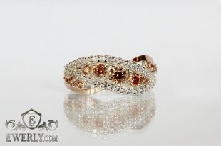 Silver ring made of 925 sterling silver with 9k gold inserts and white stones (cubic zirconia) for a girl.