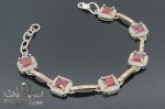 Полновесный браслет.Женский серебряный браслет со вставками золота и камнями (красными фианитами).