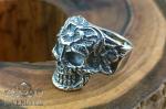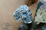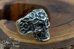 На фото изображёно кольцо из серебра в виде черепа, украшенного цветочным орнаментом имеет уникальный дизайн, который привлекает внимание и вызывает интерес. Оно станет отличным дополнением к вашему стилю и позволит выделиться среди других.