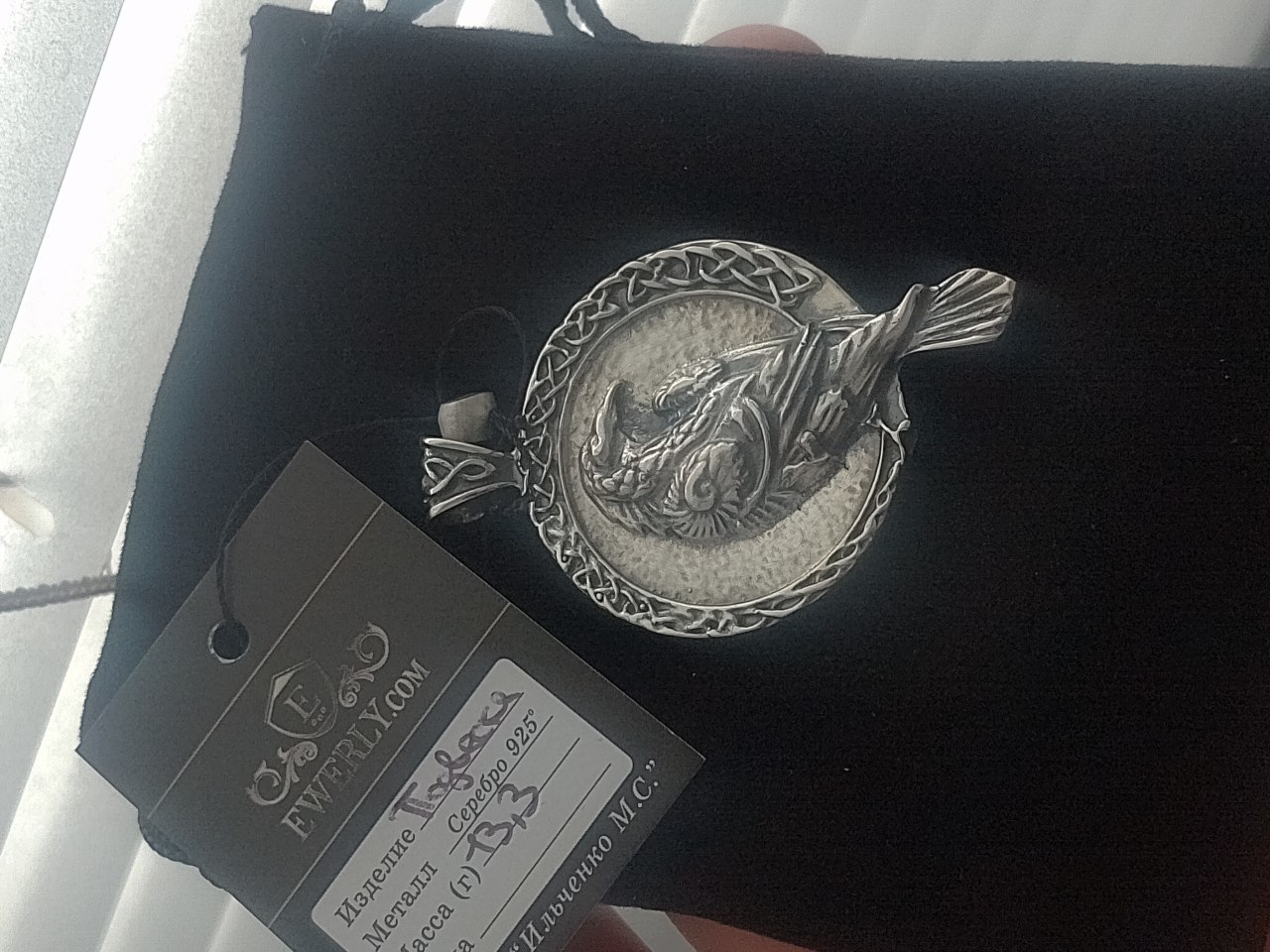 Срібний кулон із вороном