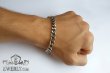Повновісний браслет. На фото зображений Панцирний срібний браслет із пластиною, дана пластина має довжину 3 см та гравіювання зверху "Miroslava".